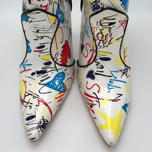 Tacoma Booties Pointy Toe Graffiti High Heel Sz9