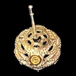 Faceted onyx studs set in Tacori's signature 925 Sterling Silver crescent basket design. The 18K gold accents are subtly incorporated into the crescent-shaped basket setting enhancing the setting's visual contrast without overwhelming the overall aesthetic. Approximately 3/8" diameter. Like new condition.