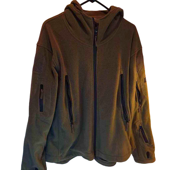 Tactical Series Men's Fleece Jacket Green Zipped Pockets Hooded Stretch Zipper L