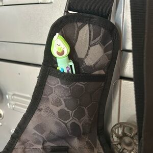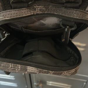Tactical utility pack can be used as a Crossbody or shoulder it is black and gray camouflage. This pack has so many compartments and so many places to put things I tried to take pictures of all the compartments I added a sag, sunglass or eyeglass case to the side can be taken off if you don’t want it on there or want to put it somewhere else on the bag. Please ask any questions you may have as to this bag has so many details.