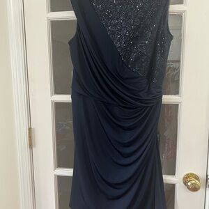 Tadahi Shoji Blue Rushed Side Sequin Dress - Size XL - blue - side hidden zipper closure - pre owned - excellent condition