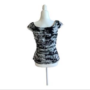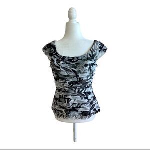 Tadash - Black Gray & White Cup Sleeve Layered 100% Silk Blouse. Size 6