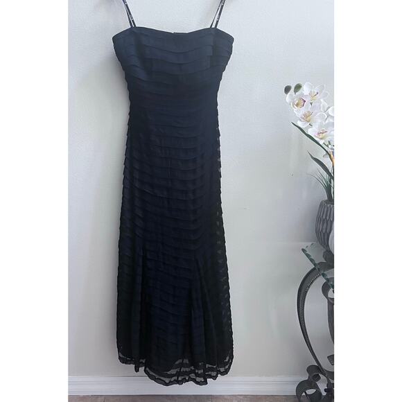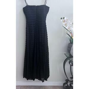 Tadashi 100% Silk Black Strapless Tiered Layered Evening Gown Maxi Dress Size 12