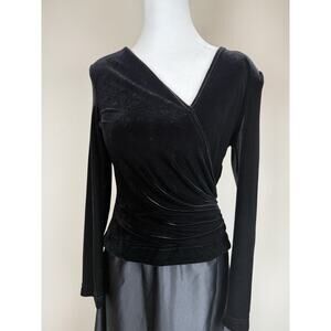Tadashi Black Velvet Satin V Neck Long Sleeve Dress Gown Vintage Sz 6
