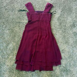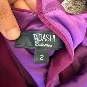 Elevate your wardrobe with this elegant Tadashi Collection dress. Crafted from 100% silk with a polyester lining, it features a stunning layered design in a rich purple hue. Perfect for formal occasions, this dress offers a sophisticated and timeless look.