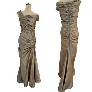 Tadashi Collection 100% Silk Ruched One Shoulder Formal Dress Gown in Gold