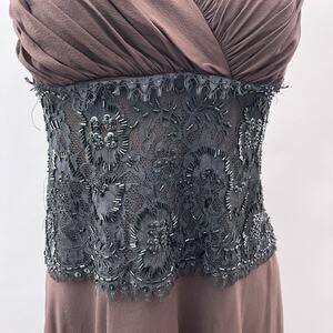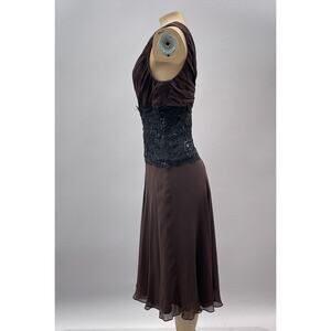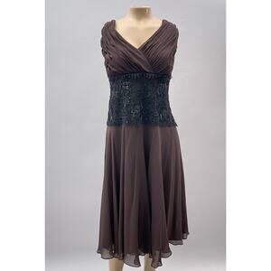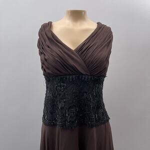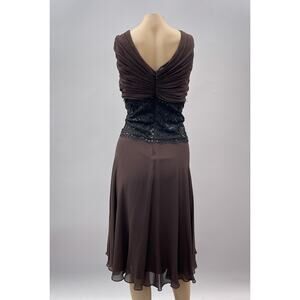 Tadashi Collection Dress Women 18 Brown Silk Black Beaded Whimsygoth Cocktail
