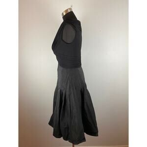 Tadashi Collection Fit Flare Cocktail Dress 8 M Black Sleeveless Ruched V-Neck