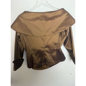 Tadashi Faux Wrap Shimmery Brown Evening Jacket Ruched Shimmer Taffeta Large Rh