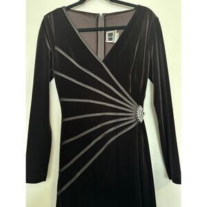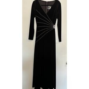 Tadashi Formal Maxi Dress Large Evening Gown Brown V-neck Rhinestone Velvet