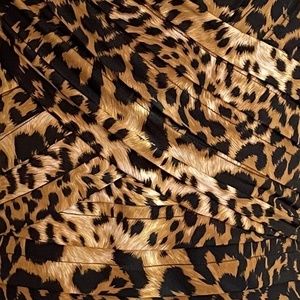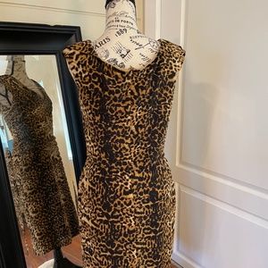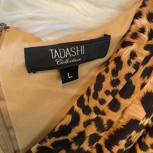 Beautiful Tadashi Dress. Fitted but thick material. Pleating. Invisible zipper im the back. Look like a pin-up bombshell in this dress! Leopard/Cheetah/Animal Print.