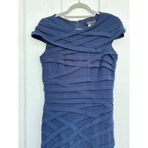 Tadashi Navy Blue Dress, Formal, Flattering, Monochromatic Lines, Cap Sleeves, Sz M