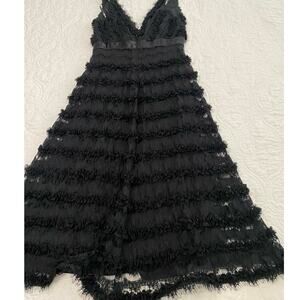 NWT Tadashi Ruffled Lace Midi Black Deep V Dress Witchy Goth Fairy Size 2