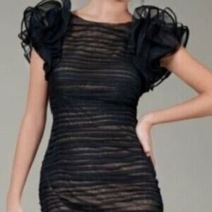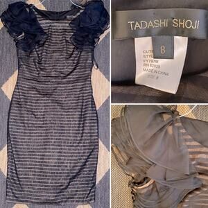 Tadashi Shoji $398 Womens Ruffle Shoulder Detail Cocktail Dress Black sz 8 31914
