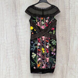 Tadashi Shoji Anais Floral Lace Sheath Dress Black Multicolor Size 8