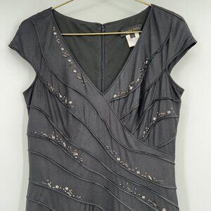 Tadashi Shoji Beaded Bandage Bodycon Cocktail V-neck Midi Dress Women's L
