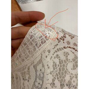 There are two lines of beads missing in the areas I have circled and pointed to above. Otherwise in excellent condition. This was originally an $818 dollar dress. It’s HUGE and can absolutely fit L & XL should the wrist sizing of 4” diameter work for you.
