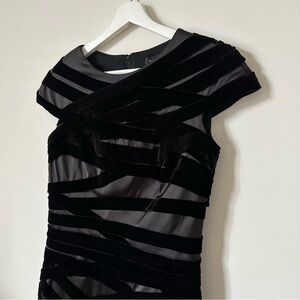Tadashi Shoji Black Criss Cross Cap Sleeve Velvet Cocktail Dress Size 4