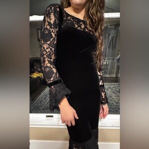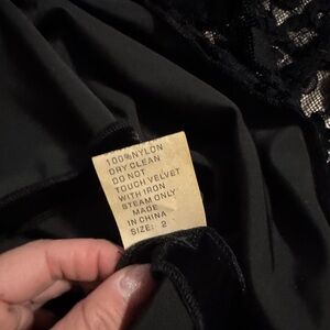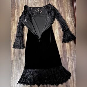 Tadashi Shoji Black Dress Size 2 Beading Velvet Trim 90s Lace Beading Embroidery