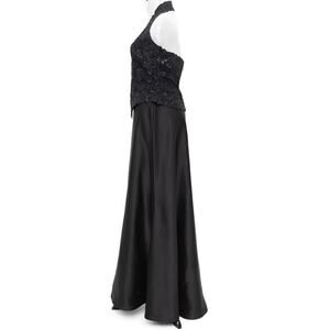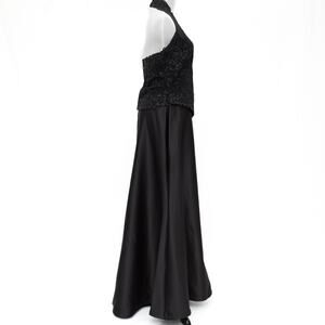 Tadashi Shoji Black Formal Beaded Sequin Halter Long Skirt Dress Size Small