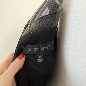 Tadashi Shoji Black Gold Sequin Mesh Illusion Cocktail Sheath Dress Size 8