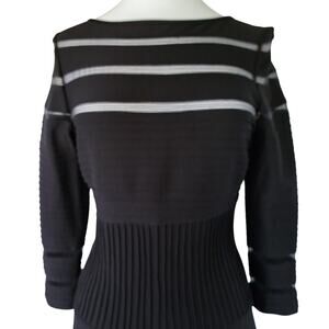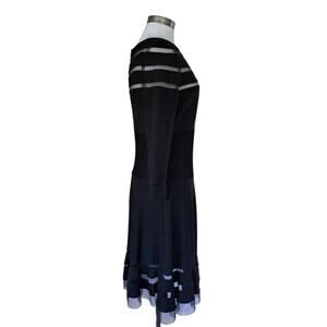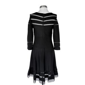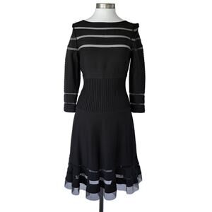 Tadashi Shoji Black Mesh Stripe Fit & Flare Cocktail Party Dress Medium 8