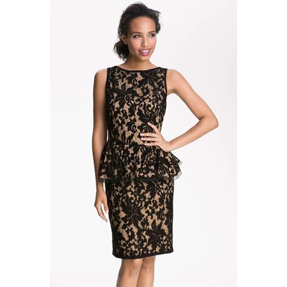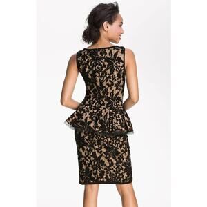 Tadashi Shoji Black Nude Lace Cocktail Peplum Mini Dress