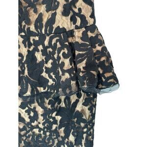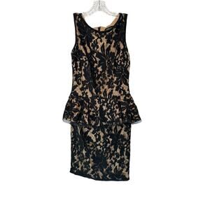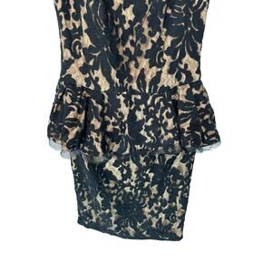 Tadashi Shoji Black Nude Lace Cocktail Hour Evening Peplum Mini Dress Size 8