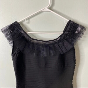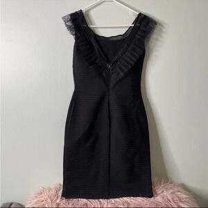 Tadashi Shoji Black Ruched Ruffle Neck Dress