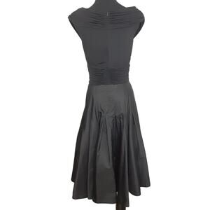 Tadashi Shoji Black Taffeta Pleated Fit and Flare Cocktail Dress Women 8 Holiday