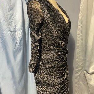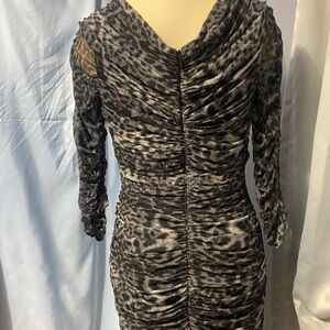 Tadashi Shoji Black and Gold Ruched Long Sleeve Bodycon Dress