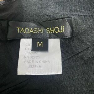 Elevate your evening look with this Tadashi Shoji dress, featuring a striking black and gold color palette. The ruched design and bodycon fit create a flattering silhouette, while the long sleeves and v-neckline add a touch of elegance. Perfect for a night out or cocktail event, this dress combines glamour with sophistication.
