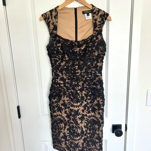 Tadashi Shoji Black and Nude Lace Mini Dress 6P