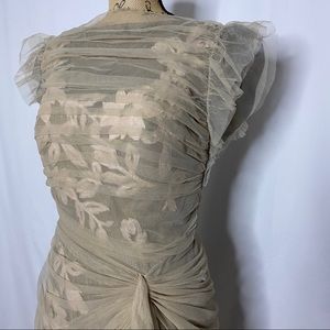 Tadashi Shoji Black w/ Ecru Mesh Draping Evening Dress, 10
