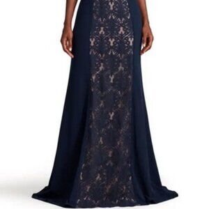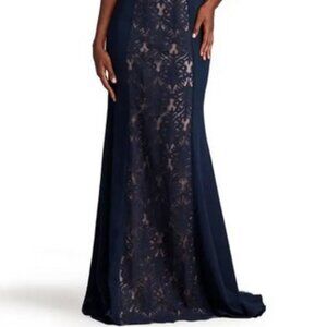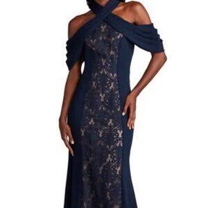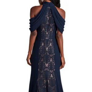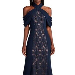 Tadashi Shoji Blue Nude Kato Embroidered Off-Shoulder Halter Gown