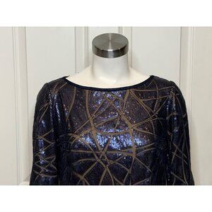 Tadashi Shoji Blue Sequin Paneled Mesh Dress, Size 4