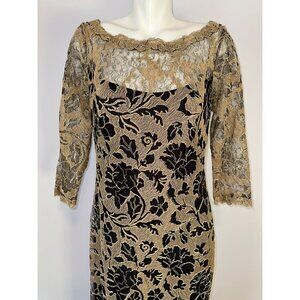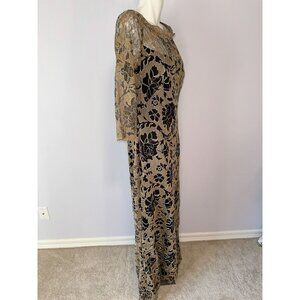 Tadashi Shoji Casablanca Gown Black Gold Dress Maxi Long Sleeve Size 14