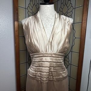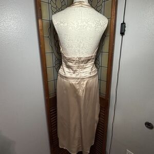 Tadashi Shoji Champagne Gold Silk Halter Cocktail Dress Size 10 in good condition pet friendly non smoking home.