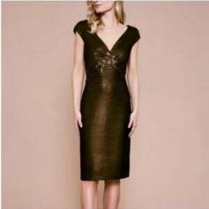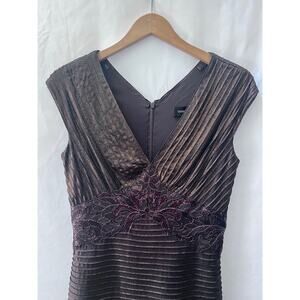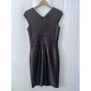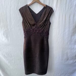 Tadashi Shoji Chim Metallic Pintuck Women's S Knee Length Brown Cocktail Dress