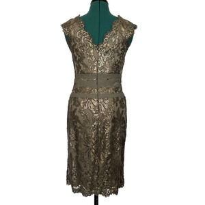 Tadashi Shoji Cocktail Dress Sequined Lace Smoked Pearl Grey Bronze Size 4