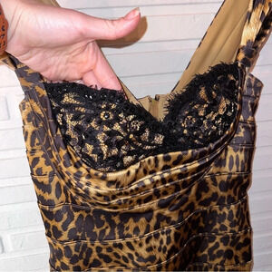 Tadashi Shoji Collection Brown Animal Print Cap Sleeve Mini Dress,Women’s Size 4