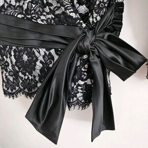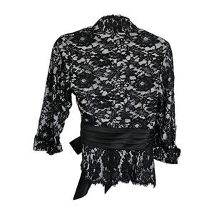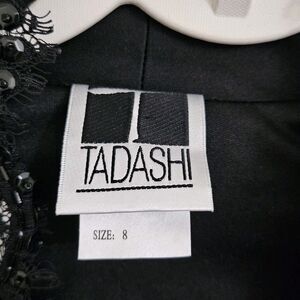 Tadashi Shoji Collection Jacket Wrap 8 Black Lace Overlay Floral Sequin Beaded Tie Waist