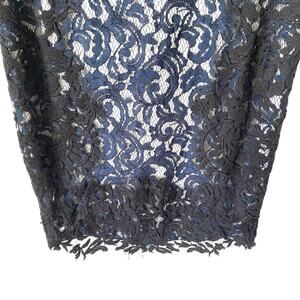 Tadashi Shoji Contrast Embroidered Lace Panel Dress size 12 Blue Black