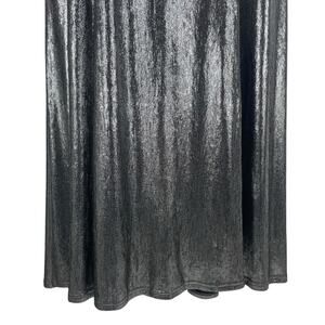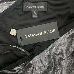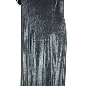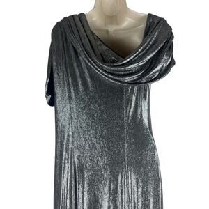 Tadashi Shoji Copley Shoulder Drape Lame Gown Silver Steel Size XL