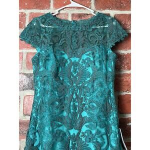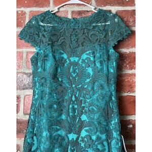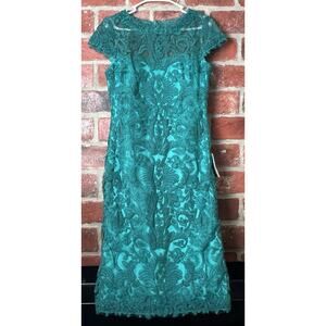 Tadashi Shoji Corded Embroidery Tulle Cap Sleeve Dress Aqua Size 10 NWT