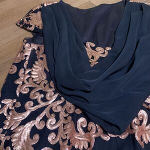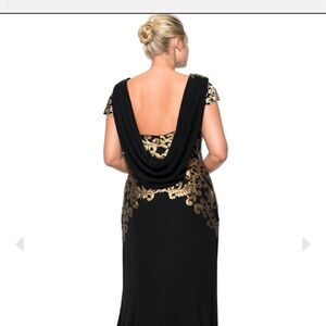 Tadashi Shoji Crepe Draped Open Back Gown With Metallic Paillette Detail