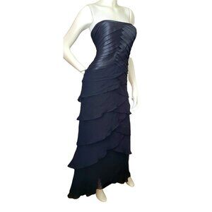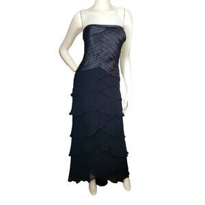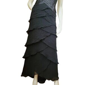 Tadashi Shoji Dress Black Layer Silk Chiffon Maxi Formal Tulip Vintage Maxi