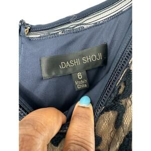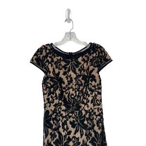 Tadashi Shoji Dress Navy Nude Embroidered Lace Formal Maxi Evening Gown Size 6