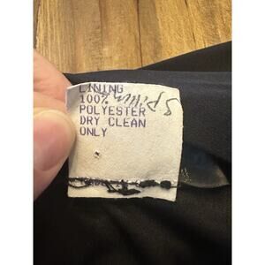 Elevate your formal attire with this stunning Tadashi Shoji dress. The black maxi dress features a one-shoulder neckline and a sleeveless design, perfect for any occasion. The dress is made of a polyester blend material with a solid pattern, and it comes in size small.