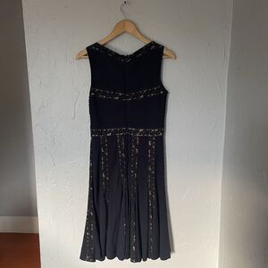 Tadashi Shoji Dress Women Small Blue Midi Navy Nude Pintuck Jersey Lace Tank
